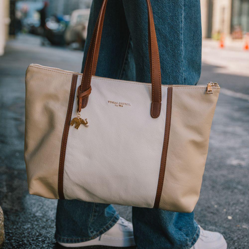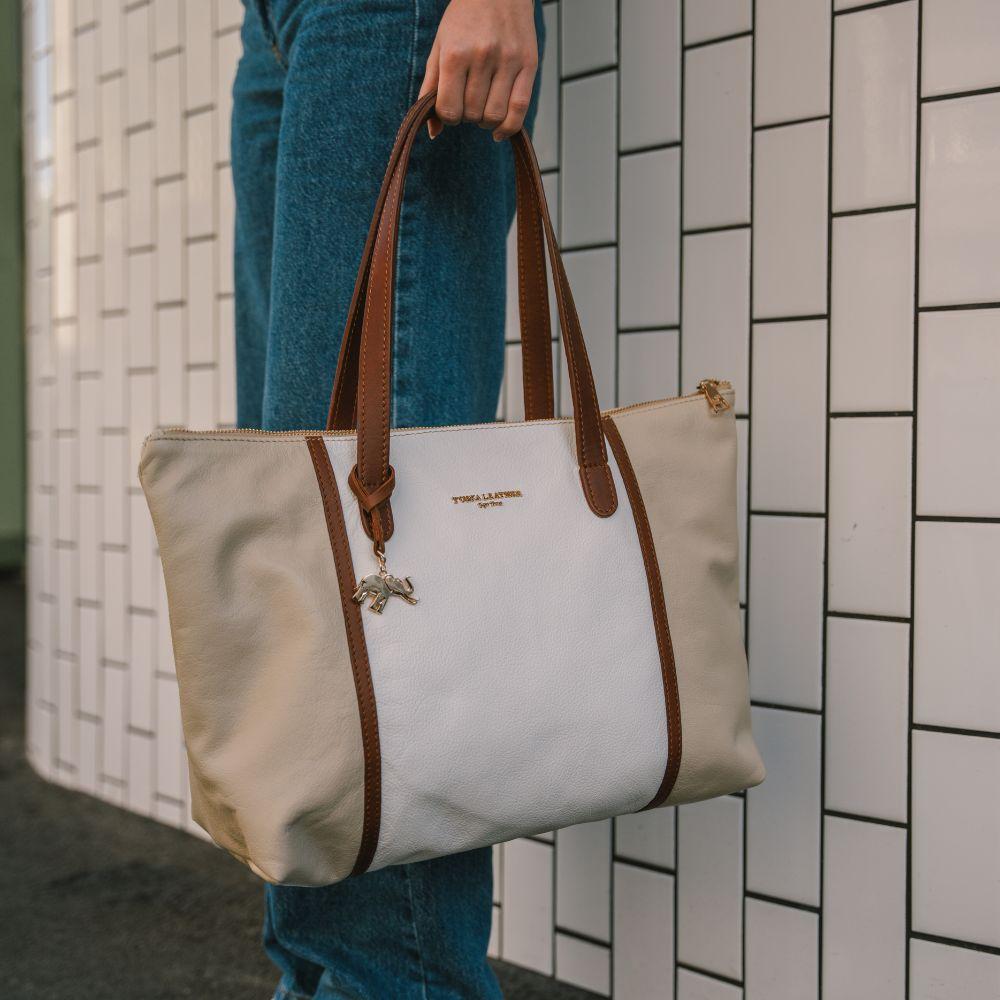 Signature Tote Bag – Cream, White and Brown