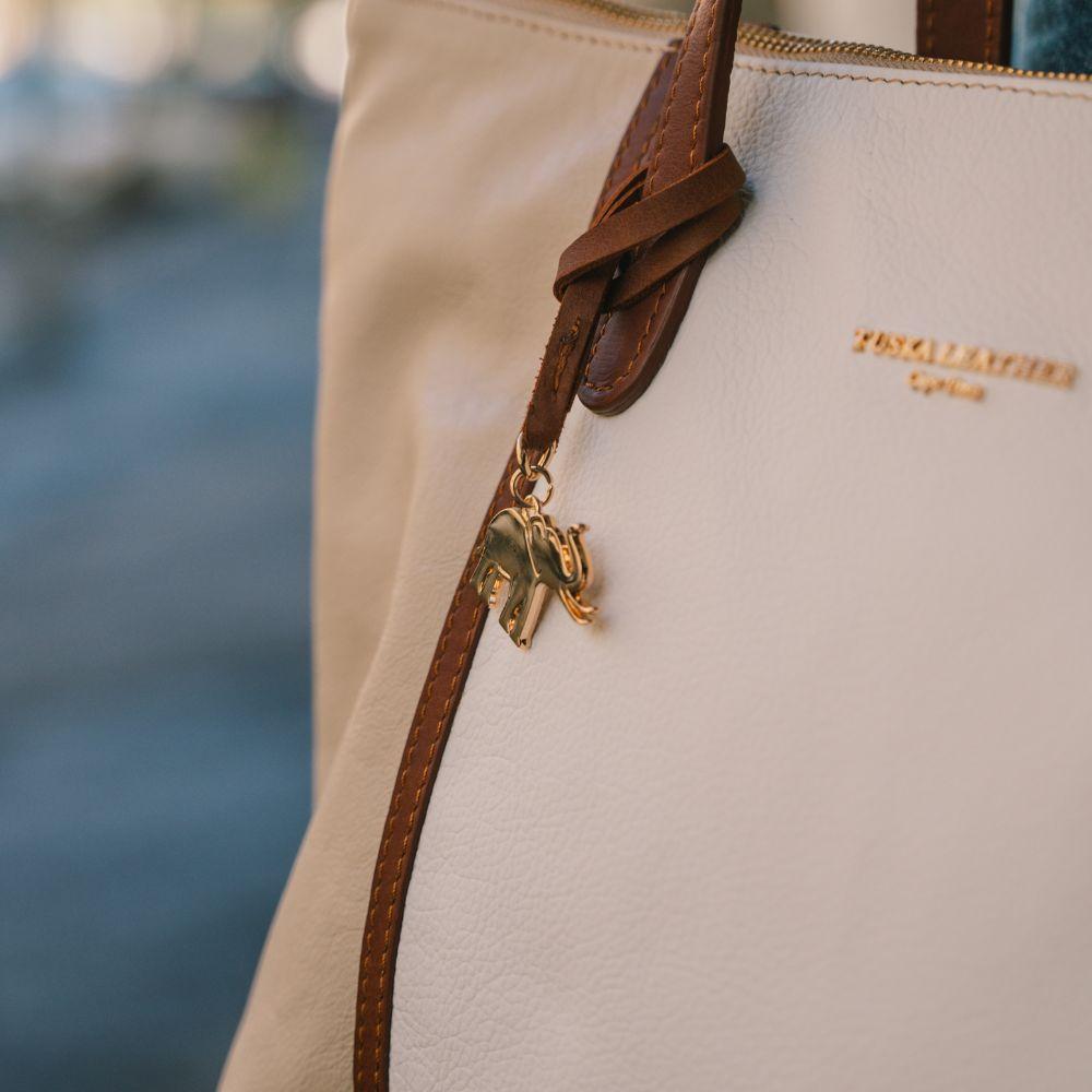 Our ultra-light weight signature leather tote bags in cream, white and brown are crafted with 100% genuine leather which is of the utmost quality. It includes our signature printed animal lining that is carefully stitched inside the main zipped pouch to add our unique touch. The bag is fitted with gold finishes and a small leather pouch inside the main zip for functionality. This bag is perfect for everyday use, big enough to hold all the essentials yet still presents that light and elegant style.